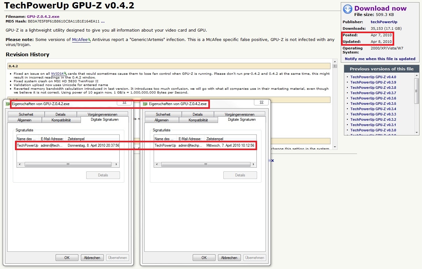 wegen GPU-Z 0.4.2 siehe Bild, update Version vom 8.4. aber gleiche Version-Nr.