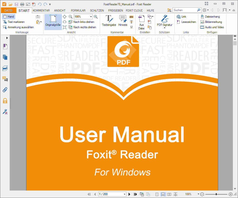 Der Screenshot vom Foxit PDF Reader ist schon ziemlich veraltet.