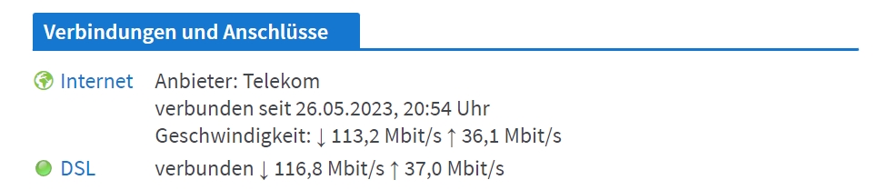 Stimmt. Mein Provider ist 1und1.DLMttH schrieb:Da 1&1 in der Regel das Bitstream-Vorleistungsprodukt der Telekom nutzt, um den Kunden zu versorgen, sind die maximalen Datenraten bei beiden (und o2 und Vodafone VDSL) exakt gleich!