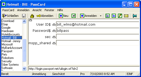 Aber auch für Logindaten eignet sich Roboform: Jede Seite die eine Passwortabfrage enthält, kann in einer Passcard gespeichert werden (max. 30 Passcards in der kostenlosen Version). Besucht man die entsprechende Seite wieder, trägt Roboform Benutzername und Passwort ein. Passwortvergessen gehört der Vergangenheit an.