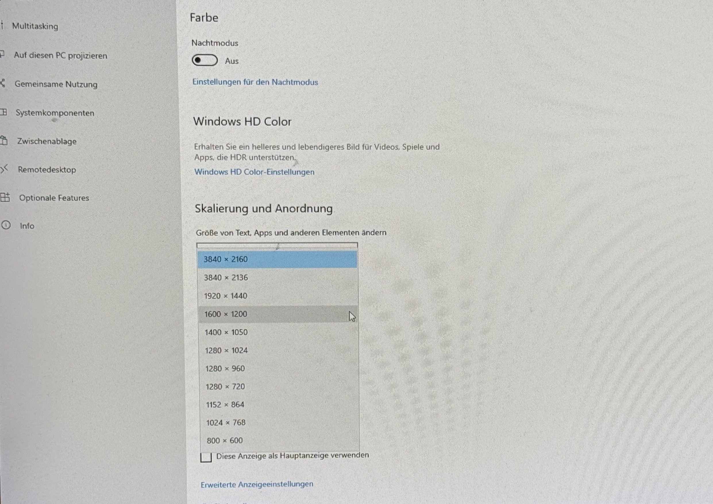wird am Monitor eine Auflösung von 3840x2160 erzeugt.