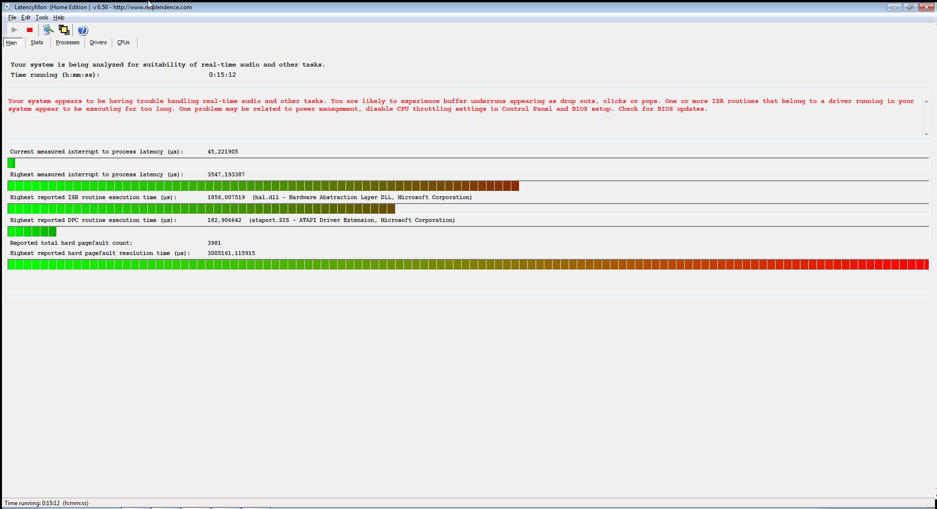 wie im Titel beschrieben habe ich ein paar Probleme mit meiner Latenz. Los ging das Ganze mit Mikrorucklern in CS:GO. In einem anderen Forum wurde empfohlen, mal den DPC Latency Checker drüberlaufen zu lassen. Und siehe da: Ständig ist der Wert über 1000, ab und zu sogar auf 1500. Es ist wirklich sehr nervig ständig diese Mikroruckler zu haben, welche sich auch auf dem Desktop bemerkbar machen.