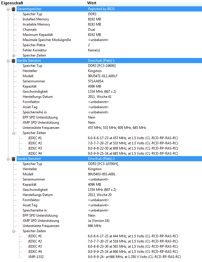 Im SIW Home Edition Tool zeigt es bei 'unterstützte Frequenzen' unterschiedliche Werte an.