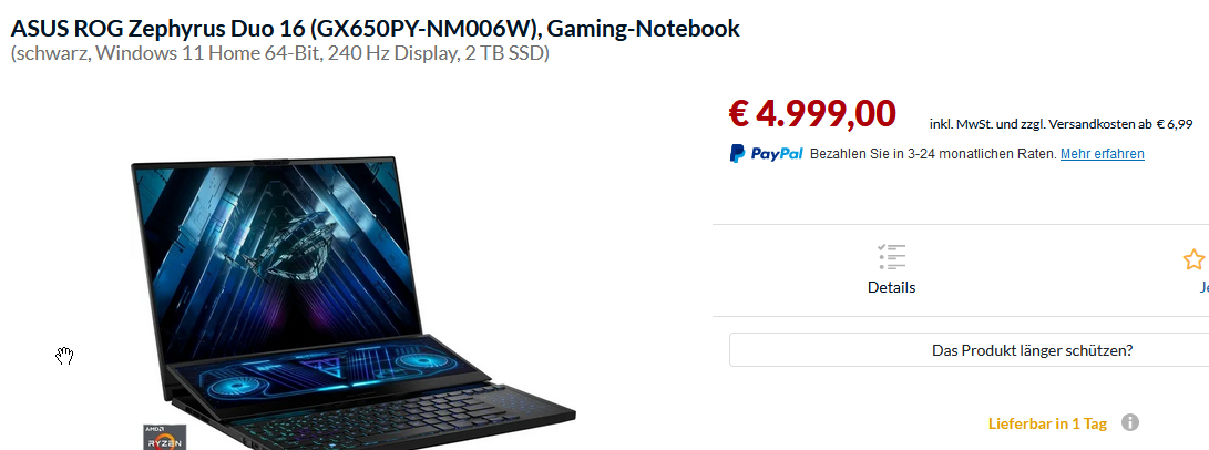Das sind aber auch Preise zum weg laufen. Der Vorgänger war deutlich günstiger bei Asus. Kollege hat sich gerade das Notebook mit 6900HX und Geforce 3080 für 2099 Euro gegönnt. Mal schauen was die Straßenpreise in einigen Monaten sagen. Hatte ja die Hoffnung das AMD günstiger ist als Intel. Sieht momentan nicht danach aus.