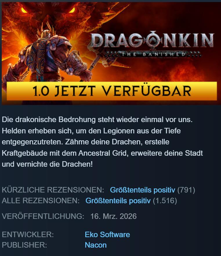 Noch ein Spiel, wie Last Epoch ist aus dem EA raus und wird momentan bei Steam für 22,49 € angeboten. Selbst habe ich das Spiel gerade erst angefangen. Es gibt 4 Klassen. Grafisch scheint das Spiel richtig fordernd zu sein, bietet aber alle 3 Upscaler-Varianten an. FSR 4 lässt sich per Optiscaler einschalten.