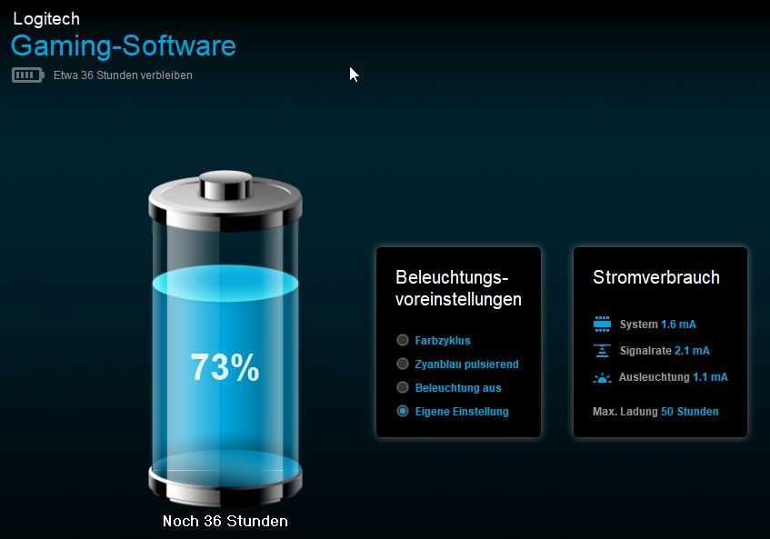 Das genialste ist aber echt der Akku: Ich habe vor genau 7 Tagen die Maus vom Strom genommen und heute inkl. aktiver Beleuchtung und intensiver Nutzung noch 73% Akku übrig. Die G703 hätte ich jetzt schon geladen...