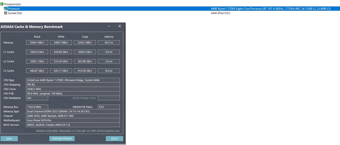 Speichercontroller : AMD F17 (Ryzen/ThreadRipper) Host Bridge 17x 100MHz (1.7GHz), 2x 8GB DDR4 3.53GHz 128-bit