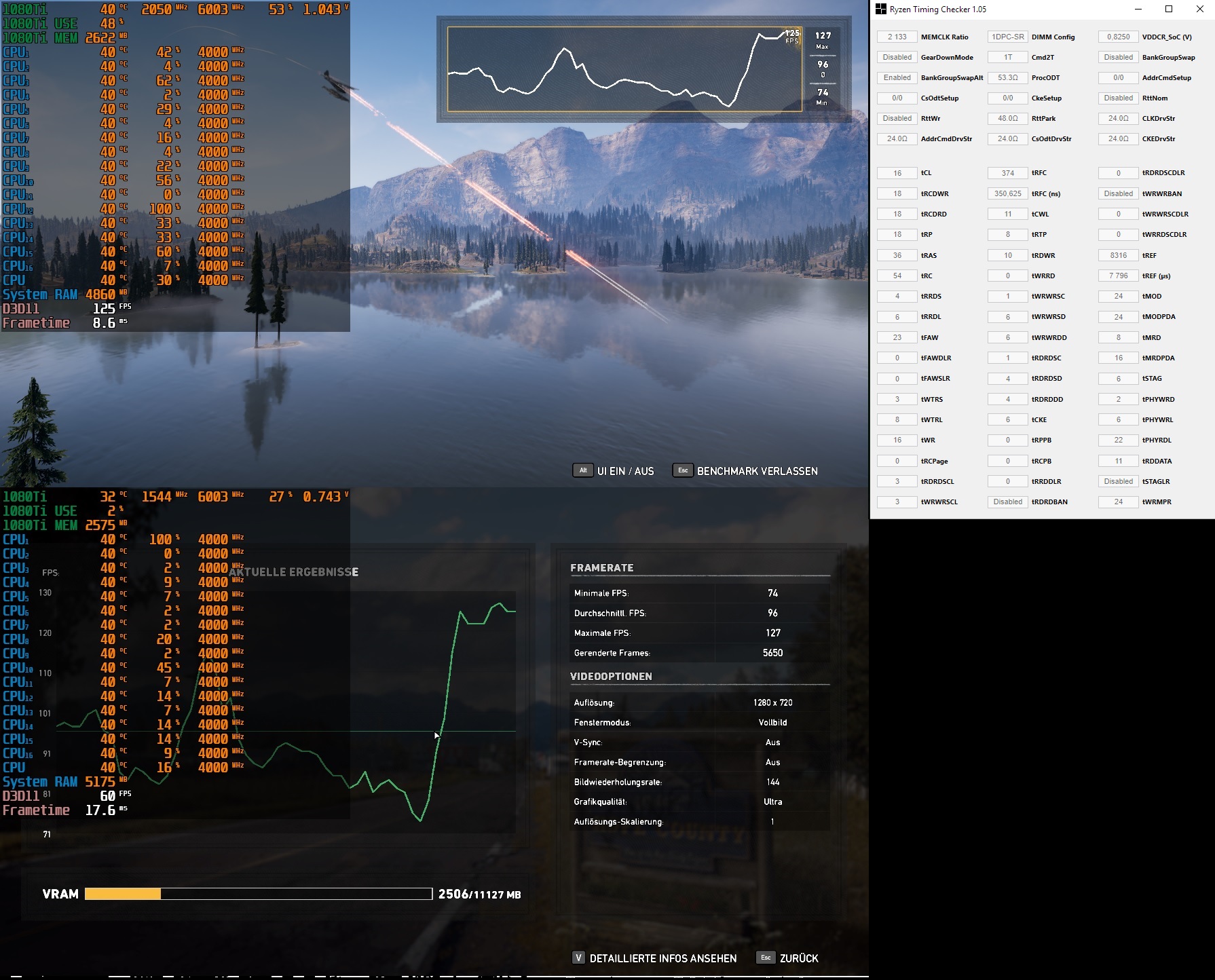 Deine Ergebnisse zeigen mir eins: 3200CL14 mit optimierten Timings sind der Sweetspot. Nur bei aktuellen Ryzen-Konfigurationen würde ich tendenziell eine höhere Frequenz fahren wollen, da der IF mit halbem RAM-Takt läuft. Aber selbst da sehe ich laut deiner Ergebnisse schlechtere min. FPS als im Vergleich zu 3200CL14.