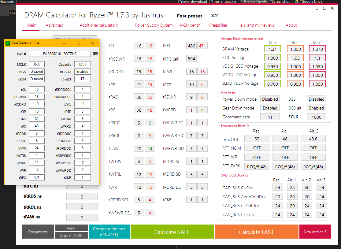 Also bei meinen Hynix DJR tut sich wohl auch die 1.7.3 noch schwer denn Ram richtig zu erkennen. Wenn ich zB den tWRRD von 4 auf wie vorgeschlagen auf 1 stelle startet der PC nicht mehr. Sonst sind meine Werte etwas besser als jene von Calculator.