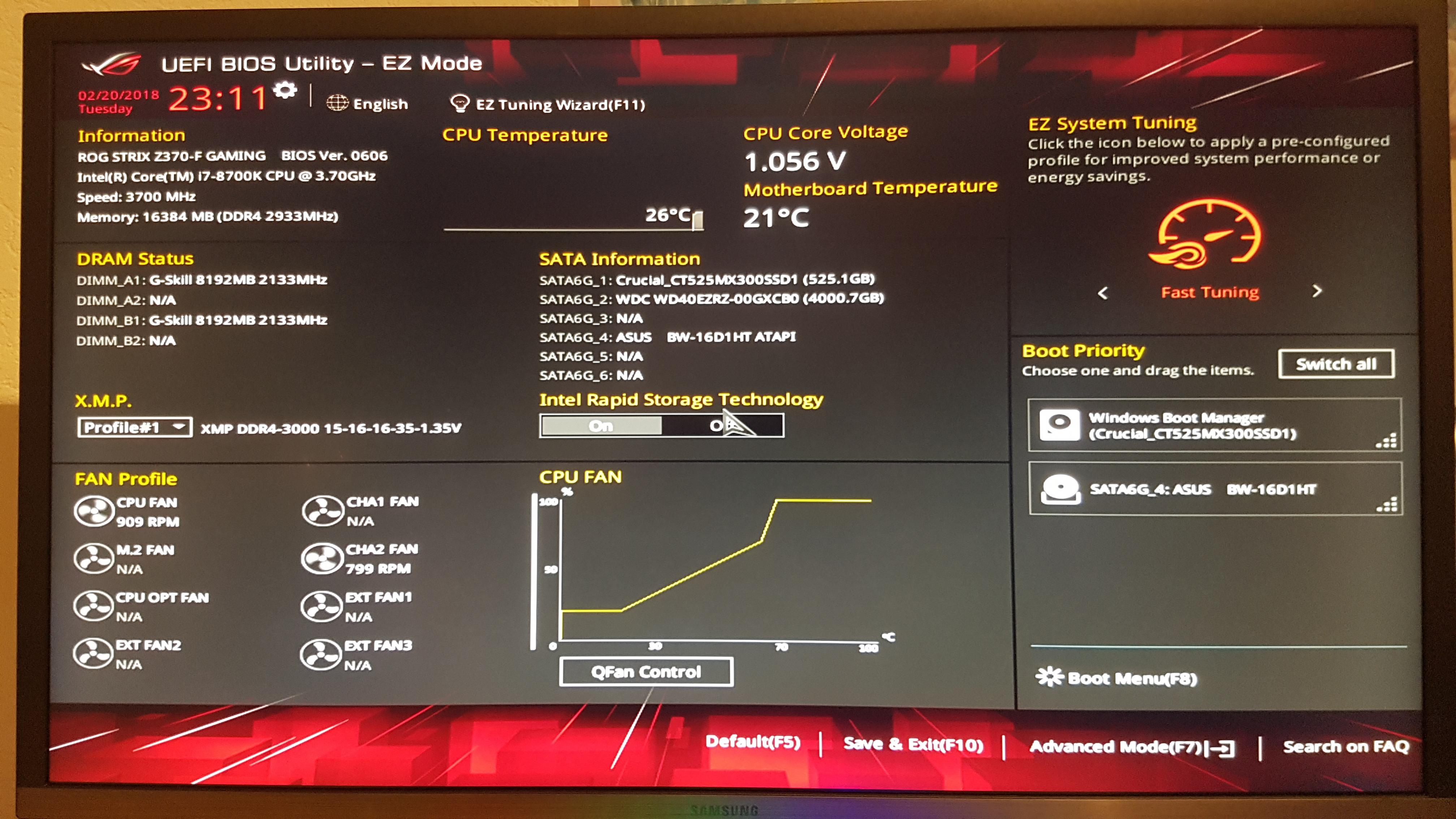 Also habe ich mich im Internet schlau gemacht und gelesen, dass sich RAM und Mainboard in dieser Zusammensetzung wohl nicht vertragen. Allerdings haben wir es in das UEFI BIOS des Mainboards geschafft, indem wir 2 RAM Stäbe entfernt haben. Das sieht dann so aus: