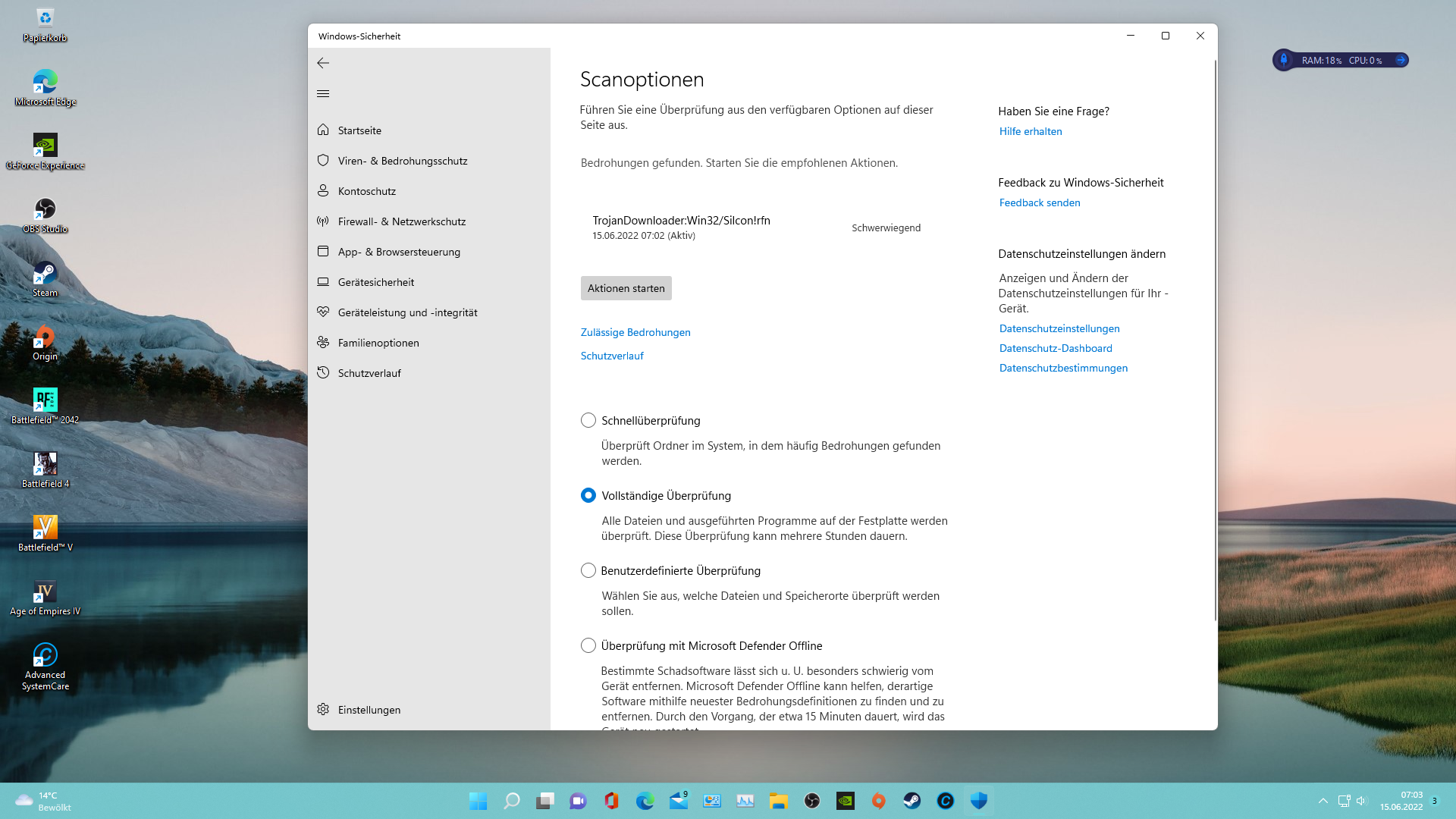Grundsätzlich. Alle Hintergrundprogramme (Threads) überprüfen, auch den Autostart! Die Helferlein von "Systeminternals" können da schon sehr nützlich sein. Auch mal die "AdwareCleaner" und "RogueKiller" laufen lassen.