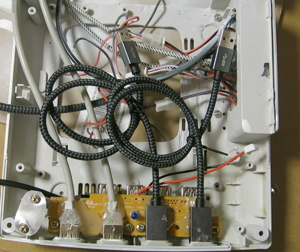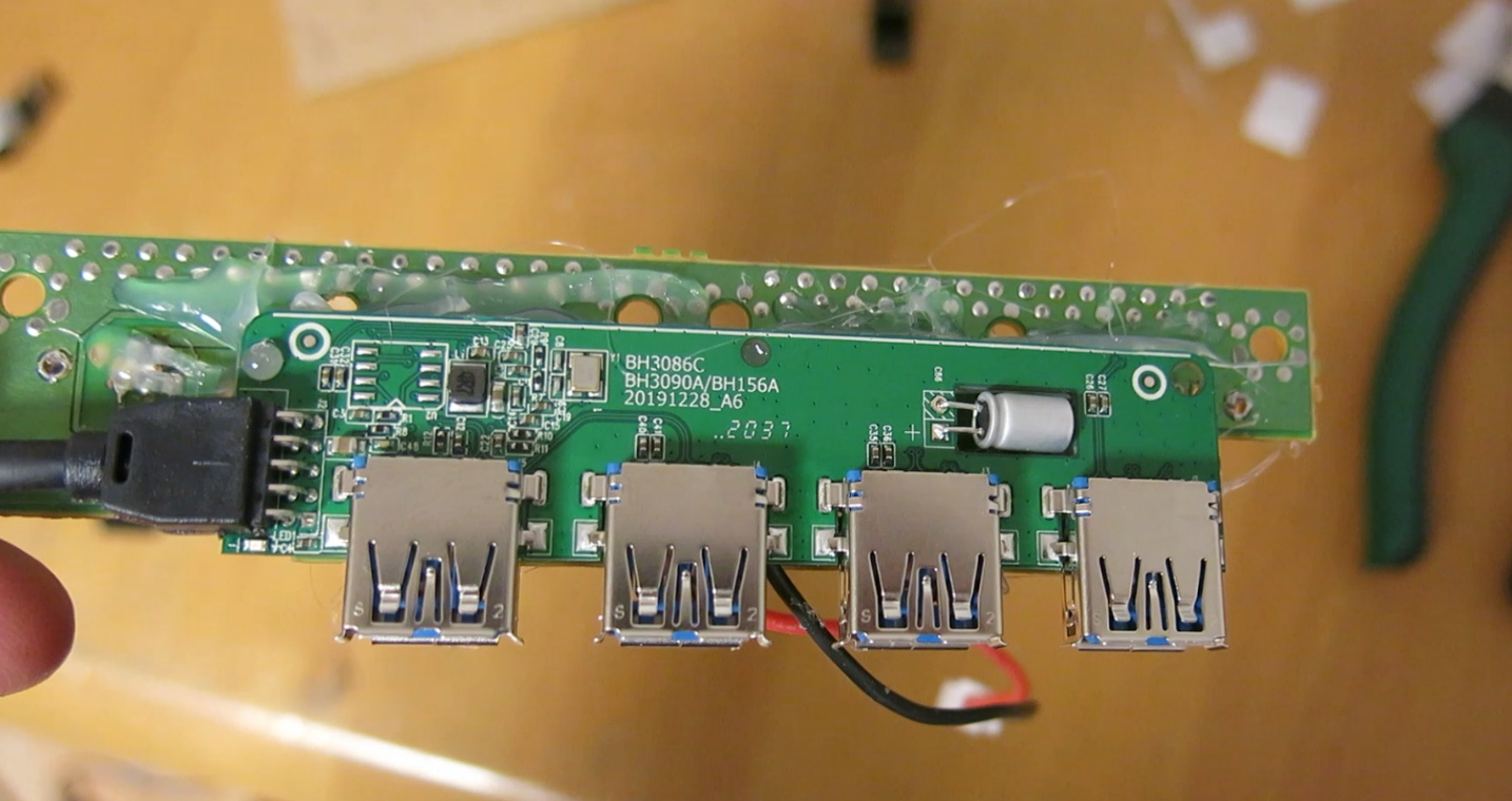 Die USB Stecker hab ich auf das original Controller Board geklebt. Darunter ist der USB 3.0 Hub heißgeklebt.
