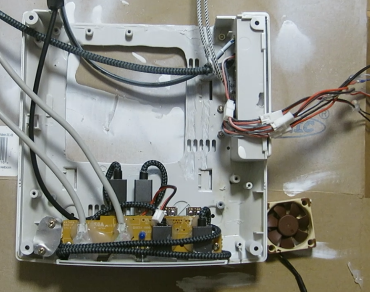 Das Mainboard habe ich Kopfüber eingebaut und es wird von der Unterseite der Dreamcast Luft angesaugt.