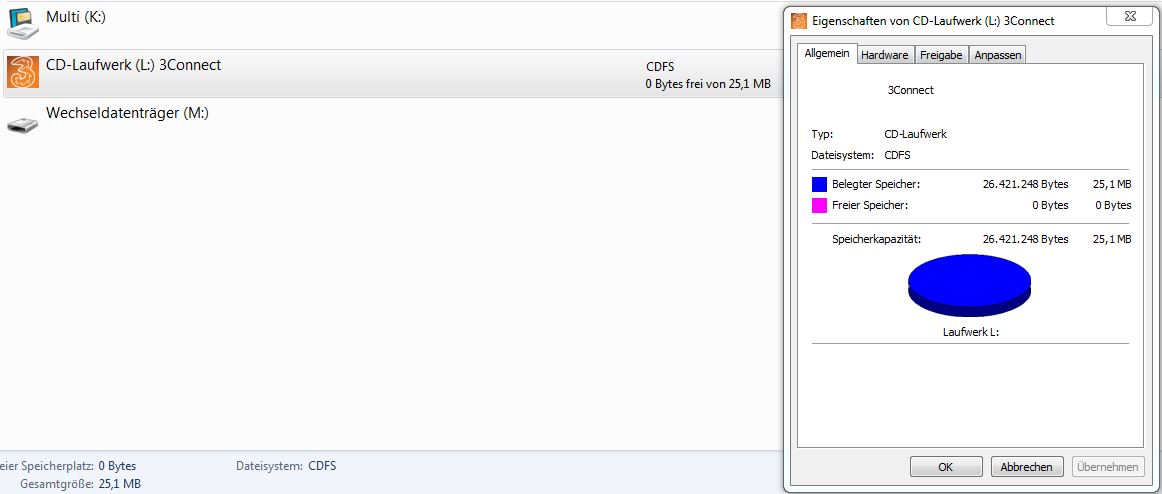 --> an meinem Desktop PC in ein USB3 Fronpanel eingesteckt, installiert (mein Netzwerkkabel abgezogen), 3Data manager, Pin, zack, verbinden, online. Im Arbeitsplatz ("Computer" halt) taucht des Ding auch als Wechseldatenträger auf. Doppelklick startet die Installation, rechtsklick öffnen "öffnet" ihn (Autorun und Setupdateien etc).