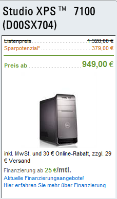 6 Kerner, 6GB Ram, HD5870, Betriebssystem und Service für aktuell knapp 1000€. Das ist doch ein guter Preis, da kann man nicht meckern. das nächstkleinere System mit nem Core i5 750 ist auch gut kalkuliert.