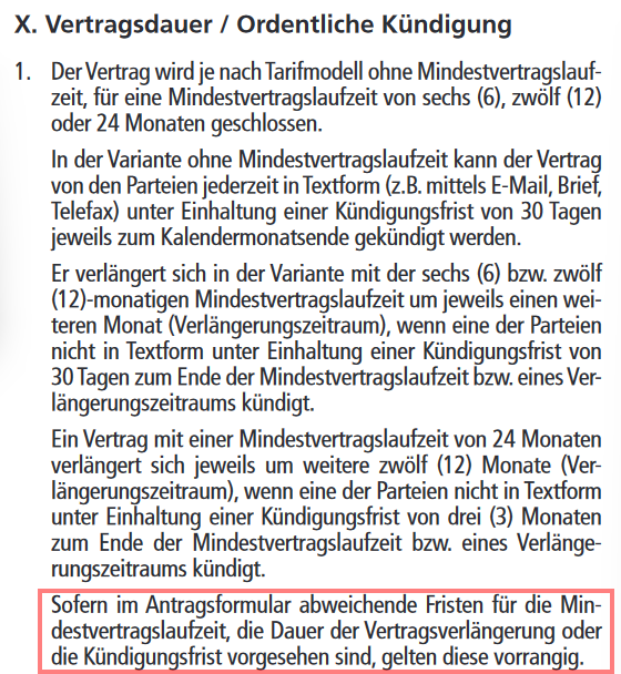 ich habe 2021 einen Vertrag ohne Mindestvertragslaufzeit bei sim.de (Drillisch) abgeschlossen und habe laut den AGBs, die mir per E-Mail zugesendet wurden (siehe Anhang Punkt X.1 Absatz 2), wie im Thread: