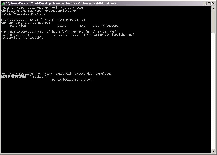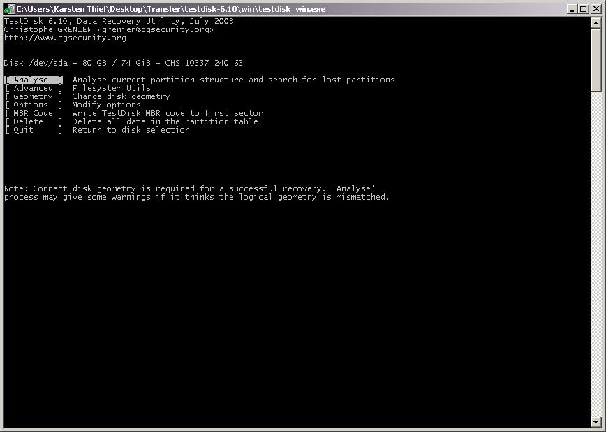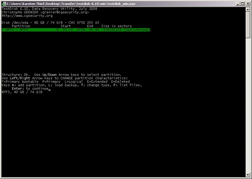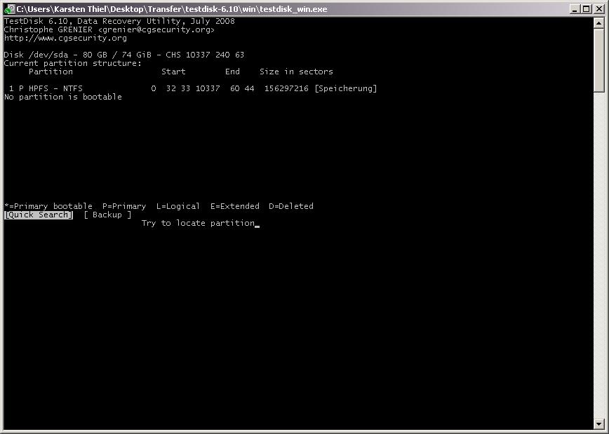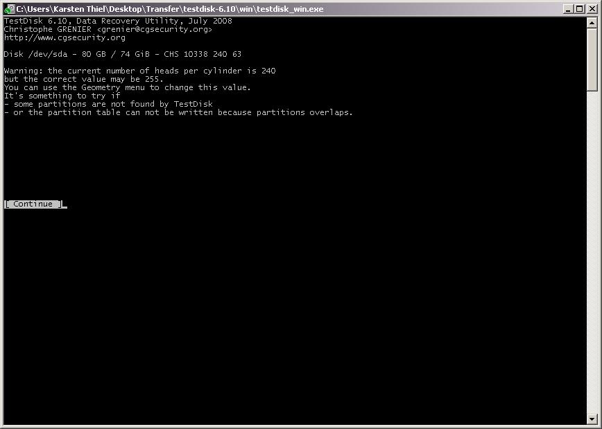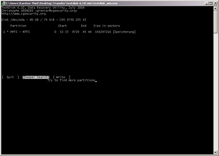 Als ich heut Nacht dann gemerkt habe das ich bestimmte Daten wie emails und Grafiken nicht auf CD/DVD gesichert hatte, habe ich TestDisk von dem Board hier runtergeladen und es ausprobiert.