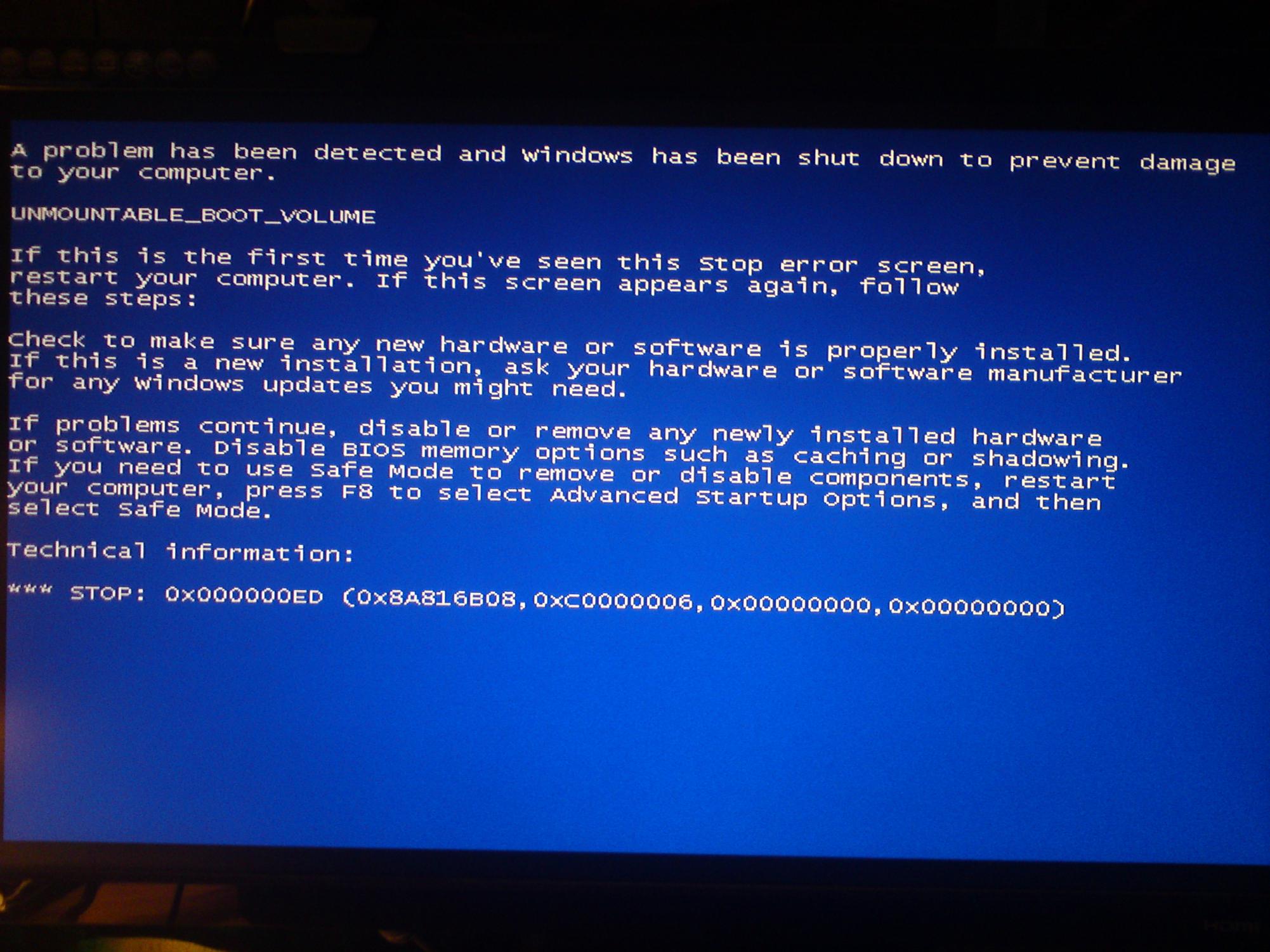 Mein Vater dieser Idi*t meinte, er müsse meinen Computer mit dem Schnell shutdown (4 sekunden auf den Einschaltknopf drücken) herunterfahren. Seit dem funktioniert mein PC nicht mehr. Wenn ich meinen Computer starte, bleibt er beim Windowszeichen hängen. Es sieht so aus, als bräuchte er ein bisschen länger, denn beim Balken unten sieht es aus als würde er laden. Nach einigen Minuten kommt für eine Zehntelssekunde ein Bluescreen und er fängt wieder von vorne an.