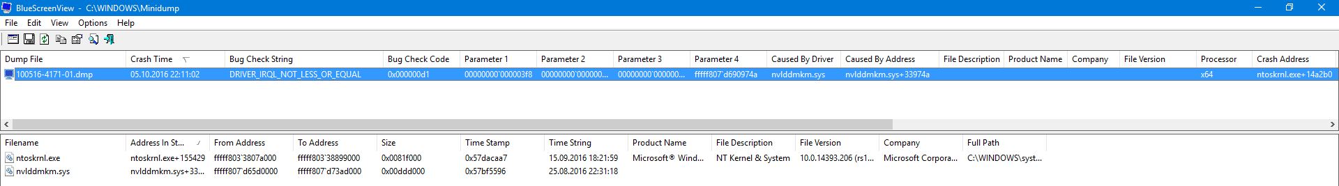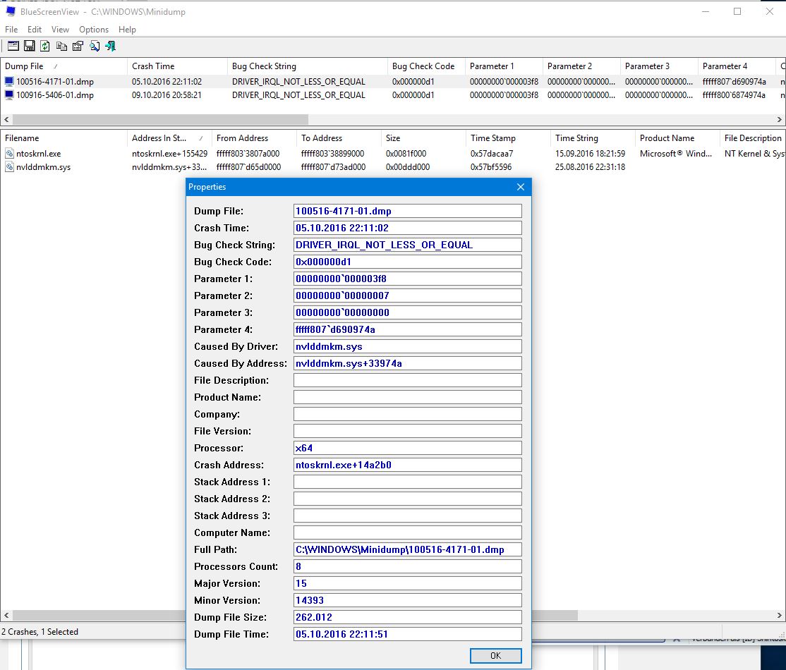 Lese ich den Bluescreen aus bekomme ich diesen Fehler: DRIVER_IRQL_NOT_LESS_OR_EQUAL nvlddmkm.sys