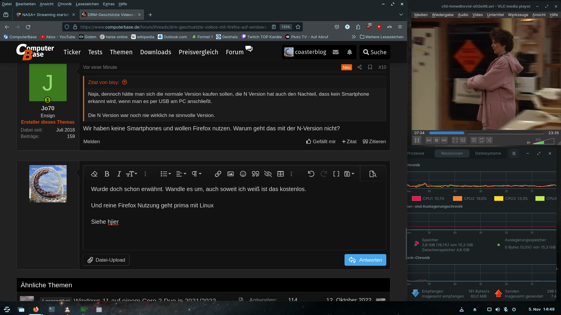 Wir hatten uns kürzlich einen neuen Gaming-Rechner zusammengestöpselt und versuchen nun die Stoftware einzustellen. Dabei macht Firefox Probleme, weil er nicht alle Videos abspielt.