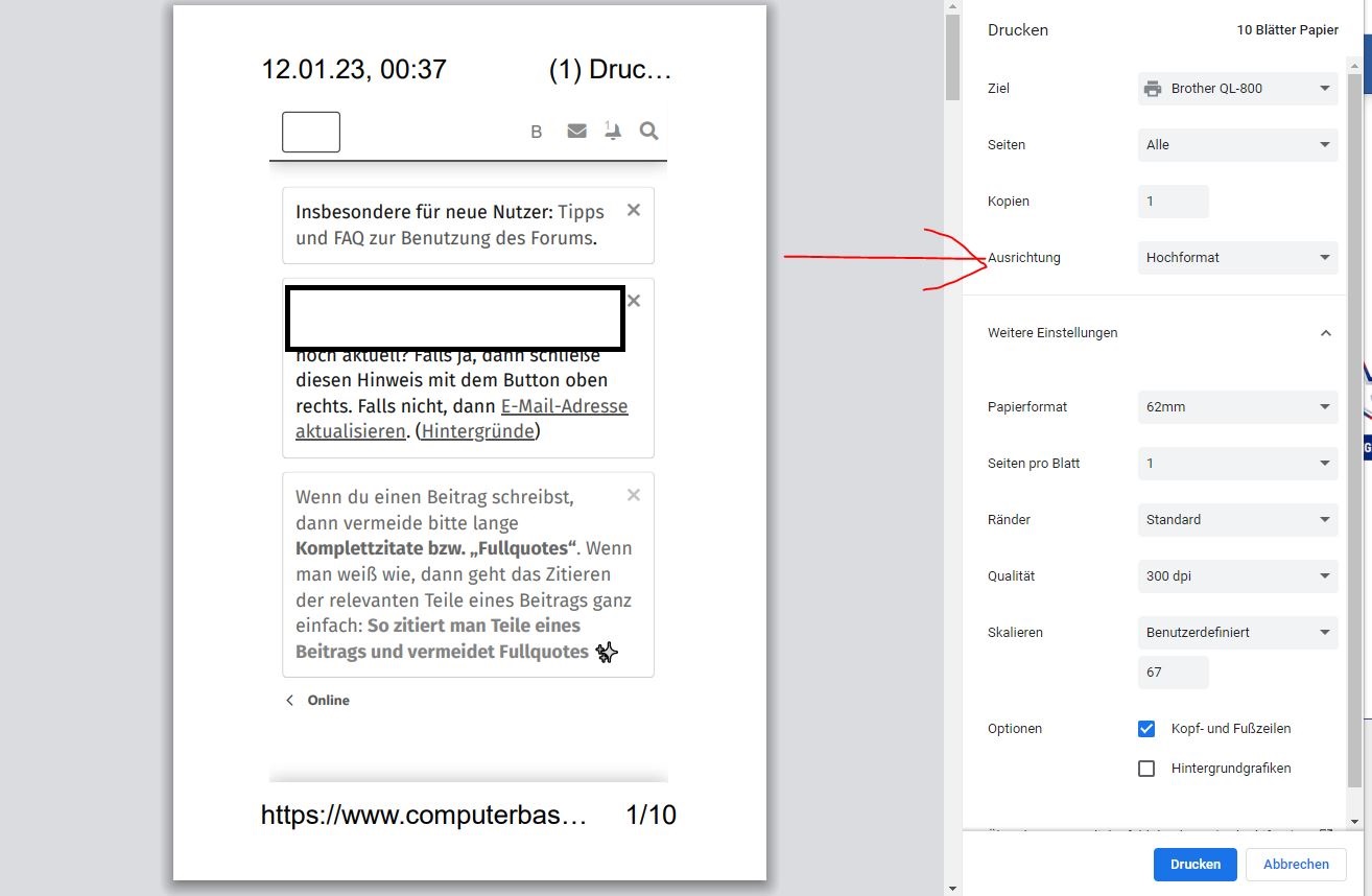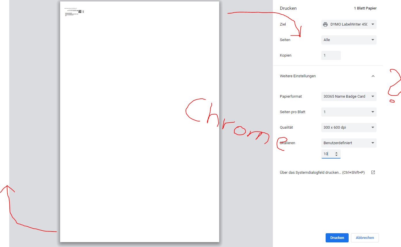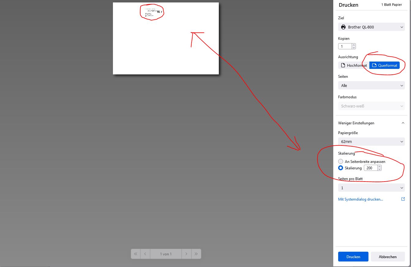 Sonst druckt der Etikettendrucker von Brother QL-800 nicht richtig. Auch wenn ich unter Windows unter Drucker das ganze einstelle, wird es bei Chrome nicht übernommen. Aber das liegt wohl an der Software von dem Etikettendrucker.