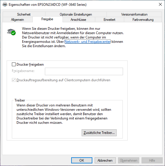 Zum anderen Verstehe ich den Text (auch in deinem geposteten Bild) nicht. Da steht doch, wenn ich den Drucker freigebe, kann ich ihn nur "mit Anmeldung für diesen Computer nutzen" und z.B. nicht, wenn dieser Computer im Energiesparmodus ist. Ja das will ich doch gerade nicht. Vielmehr will ich den Drucker unabhängig von einem bestimmten Computer im Netztwerk eben aus allen Computern nutzen können. Das heißt dann, ich darf den Drucker keinesfalls freigeben? Ich verstehe nur Bahnhof...