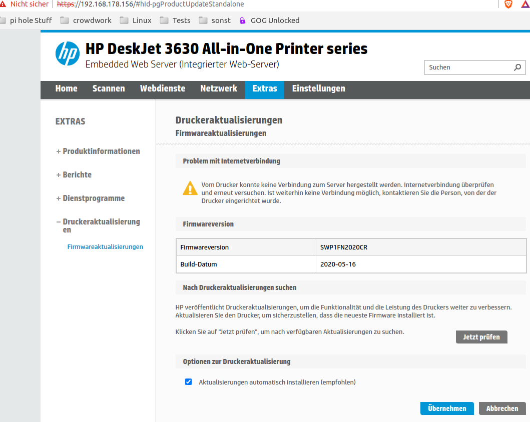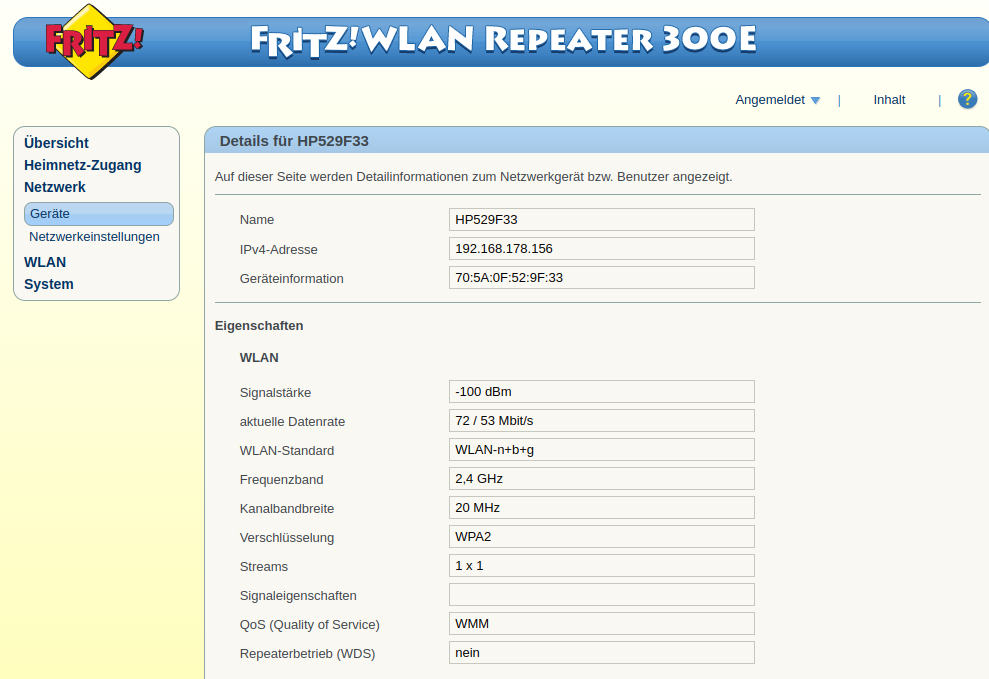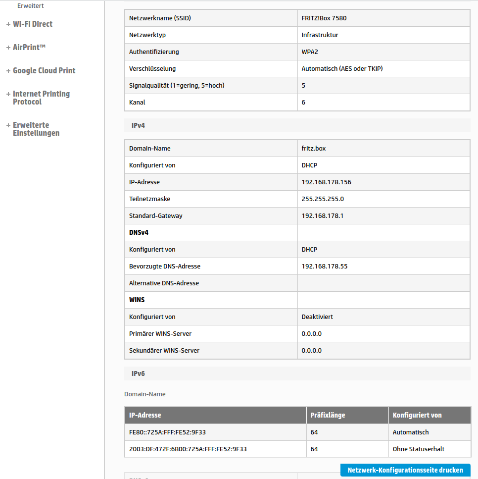 Ich bin ratlos, wieso der Drucker im Netzwerk wunderbar erreichbar ist. Sowohl in der FritzBox, als auch im Repeater für mich alles korrekt aussieht, aber dennoch keine Verbindung mit hpsmart aufgebaut werden kann.