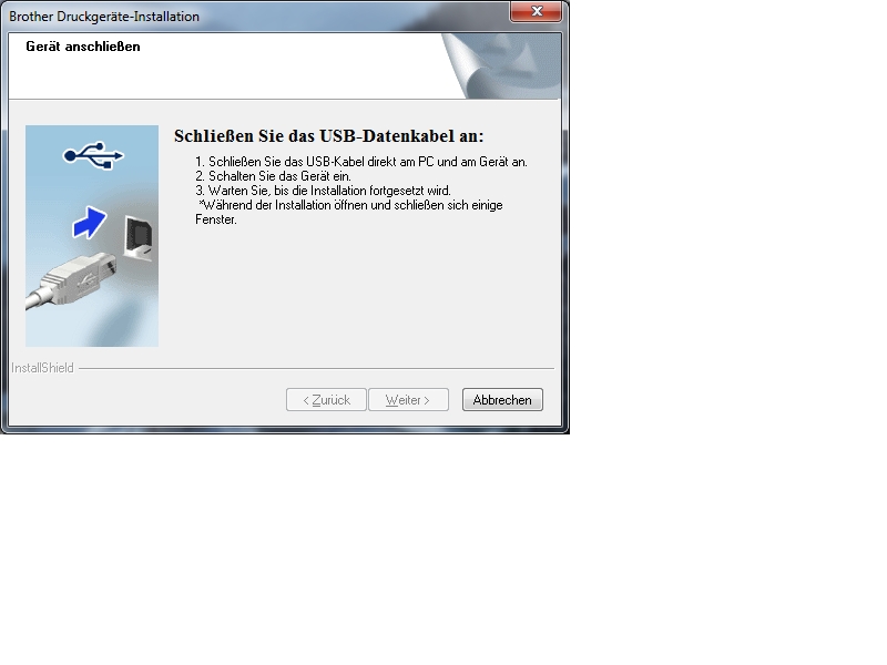 Ich hab den Drucker schon an- und abgeschaltet, einen anderen USB Port versucht, hab den Treiber mit dem Uninstaller Tool von Brother komplett runter geschmissen, das Gerät aus dem Gerätemanager entfernt, den Rechner mehrmals neu gebootet, etc. Ich bleibe immer auf diesem Screen stehen, es passiert nichts. Nach 1-2 Minuten erscheint ein weiteres Fenster, man solle sich bitte vergewissern, dass das Kabel intakt sei, blablabla. Aber ich kann die Installation nicht fortsetzen.