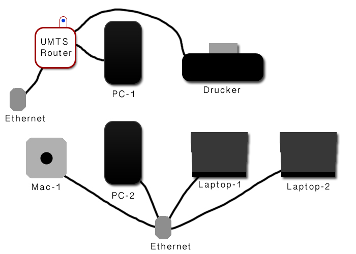 Nur mit dem Drucker (Canon MP640) habe ich Probleme. Ich habe den Drucker über die IP die er mir angezeigt hat mit den Rechnern verbunden.