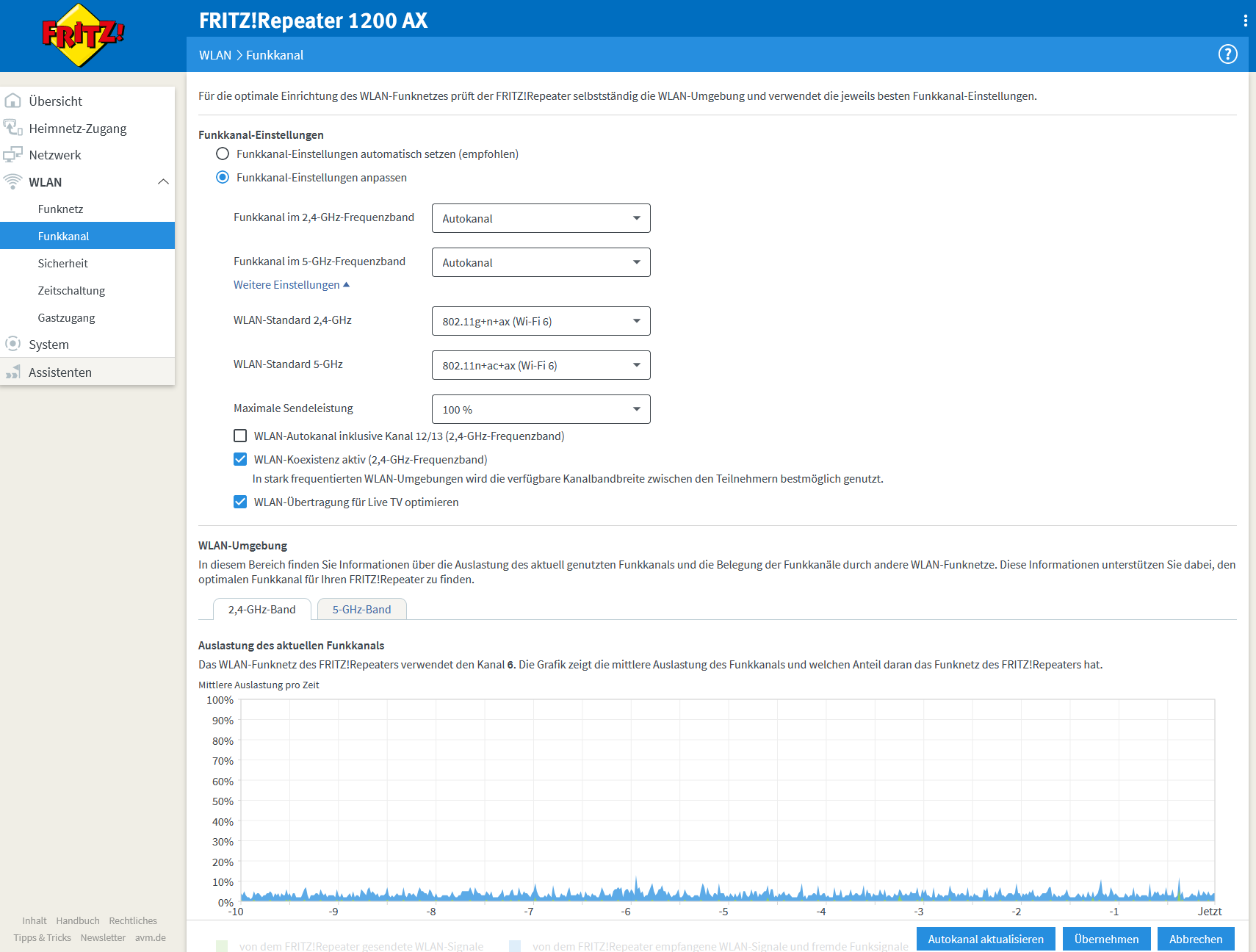 - Repeater (FRITZ!Repeater 1200 AX) im EG und OG sind per LAN angeschlossen und spannen dort jeweils das MESH-WLAN auf.