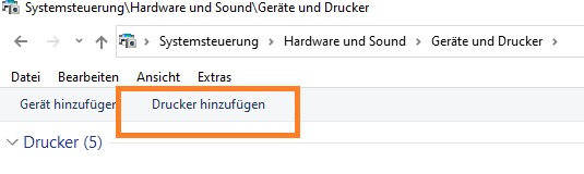 - Nun klicken Sie in der Menüleiste auf "Drucker hinzufügen".