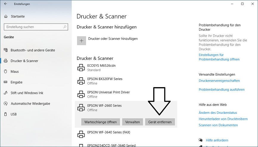 Das Problem ist, dass meine beiden "realen" Drucker in den Menüs meiner Programme verschwunden sind, insbesondere bei Ms Office, Open Office und dem Acrobat Reader. So etwas wie der Pdf Creator, Pdf24, etc. sind noch drin. Wenn ich z.B. bei Word dann einen Drucker hinzufügen möchte, werde ich in die Win 10-Einstellungen weitergeleitet, wo die Drucker zwar aufgeführt sind, aber mit dem Hinweis "Treiber nicht verfügbar" gekennzeichnet sind. Im klassischen Gerätemanager unter "Druckwarteschlangen" sind sie auch nicht aufgeführt, während das herstellereigene Programm mir verkündet, alles sei in Ordnung und der Drucker betriebsbereit. Jedenfalls geht es dabei um 2 Drucker an 2 verschiedenen voneinander entfernten Standorten - beide von HP.