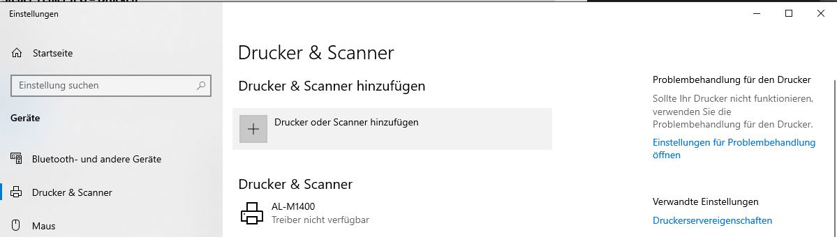Mein Problemchen besteht darin, dass mein Laserdrucker Modell Epson Aculaser M1400 nach seiner Installation nicht erkannt wird. (Siehe Dateianlagen). Fehler: "Treiber nicht verfügbar", obwohl bei Geräte und Drucker" der Laserdrucker aufgelistet ist.