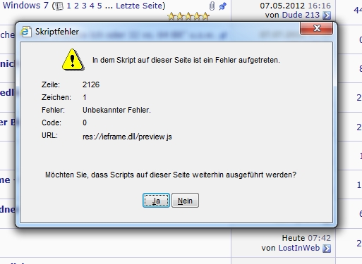 Nun muß ich den BAll mal weitergeben, da ich firefox benutze. Ich meine es gibt beim IE ein paar Einstellungen die das Ausführen von Scripten unterbinden....