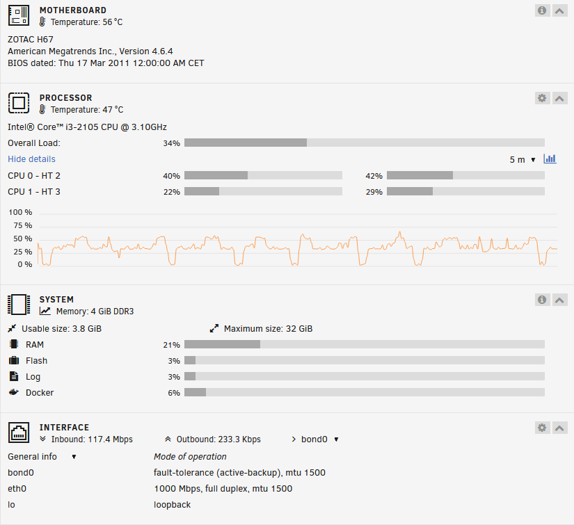 Unraid NAS: ZOTAC H67, i3-2105, 4 GiB DDR3, 1GBit Lan