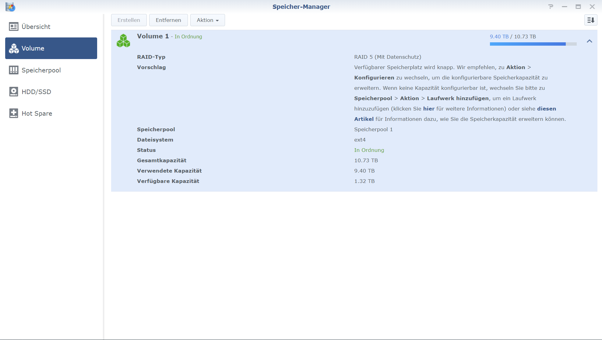 da meine NAS immer wieder an die Grenzen des Speicherplatzes kommt, würde ich gerne eine der fünf 3TB Platten mit einer einer größeren 8-10TB ersetzen.