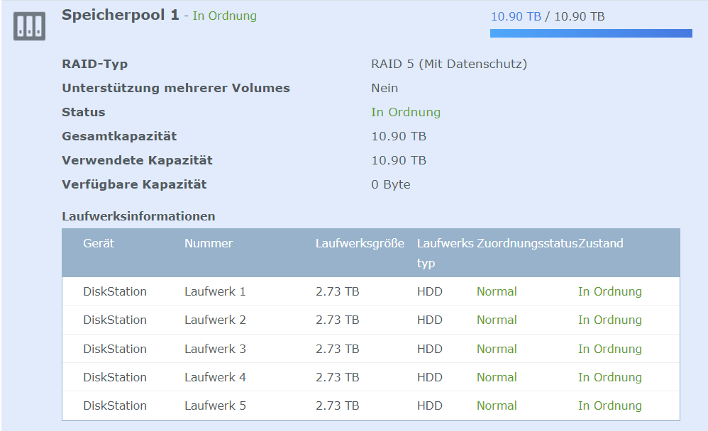 Mein System läuft aktuell mit RAID5. Wenn sich eine Platte ersetzen lässt, welche von den Fünf müsste das dann sein ohne Datenverlust?