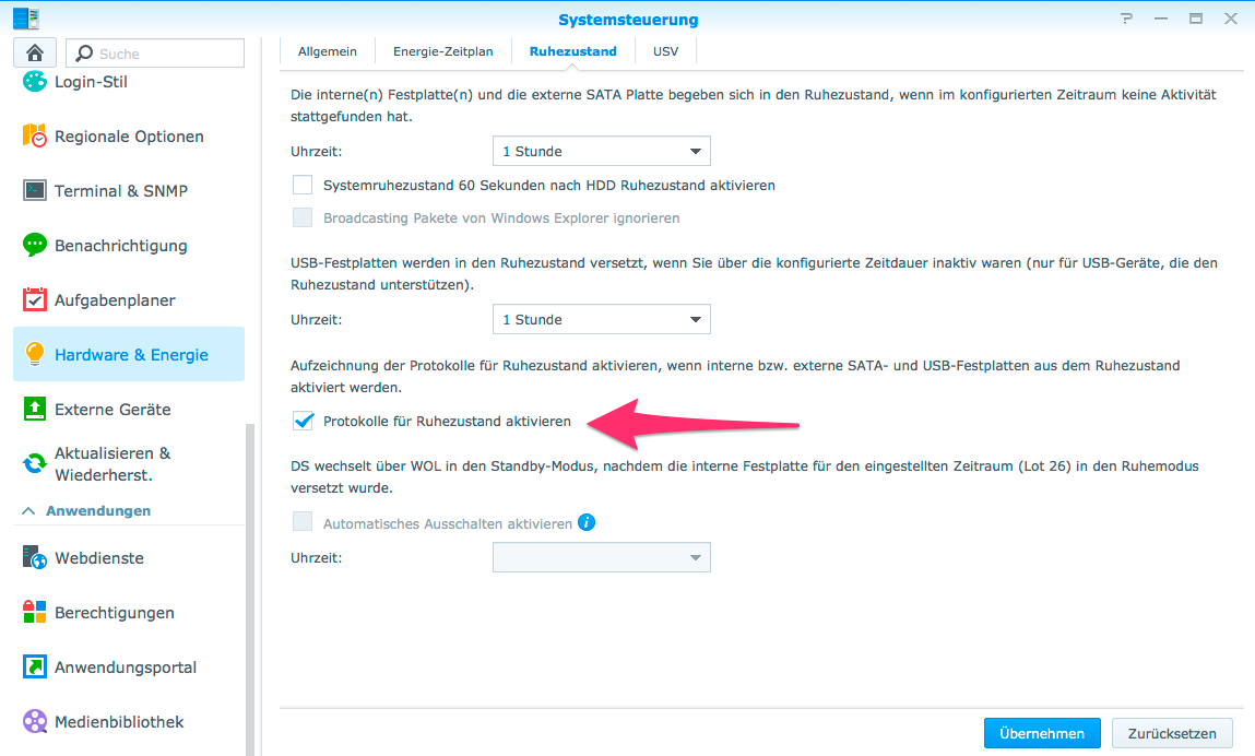 Ein weiteres Problem ist, dass ich eine Zeit von einer Stunde eingestellt hab, bis das NAS in Standby geht. Ich "erwische" es aber immer öfter dabei, dass es läuft, obwohl eigentlich seit Stunden niemand mehr zugegriffen hat. Woran könnte das eurer Meinung nach liegen?