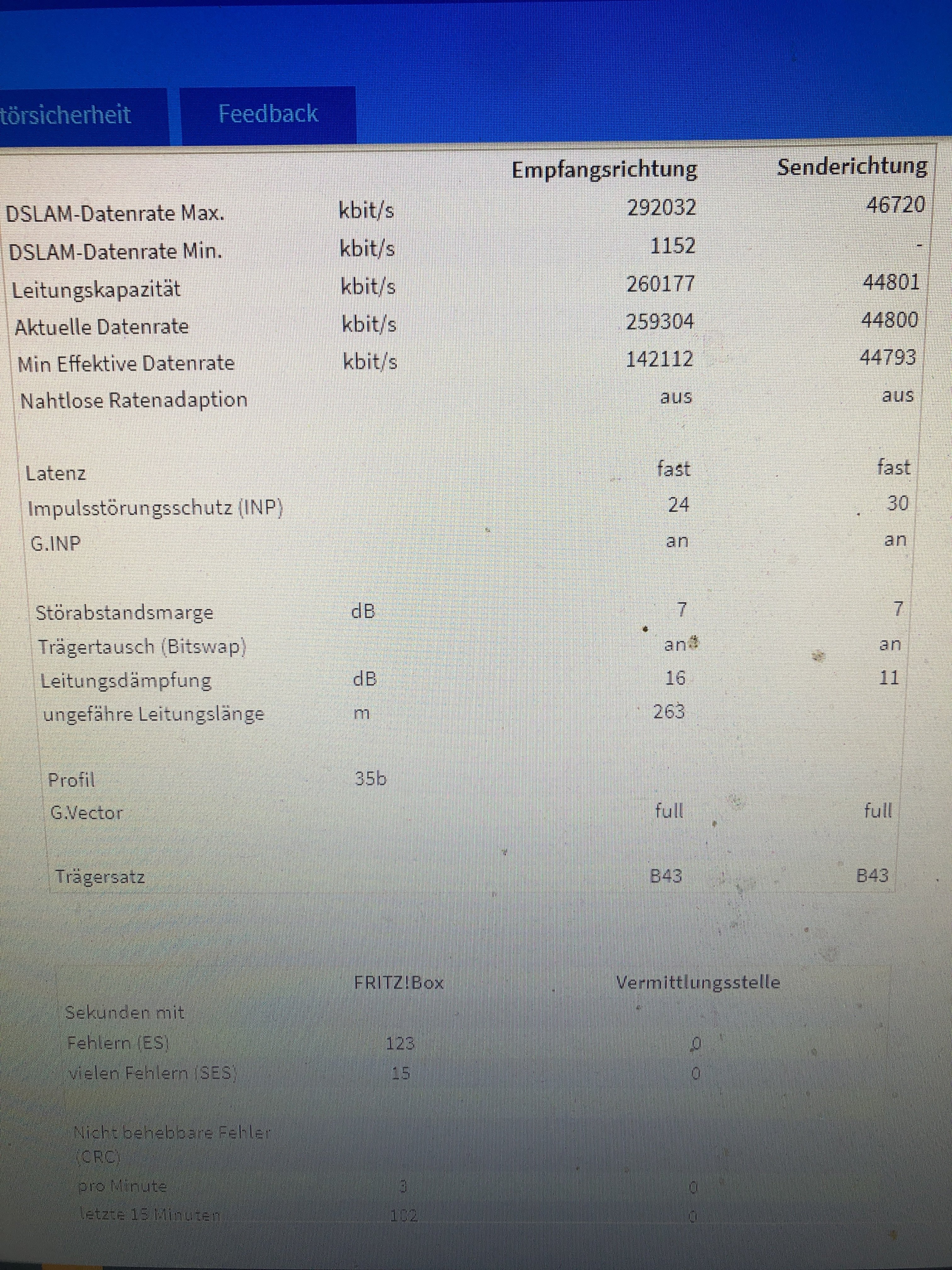 Ich habe einen dsl 250k Anschluss bei Vodafone in Düsseldorf und die fritzbox 7530. bis zu meiner Wohnung empfange ich auch bis so 200 mb im Download und auf der fritzbox Seite sogar bis hin zu 250mb werden mir angezeigt. Weshalb ich Vodafone wegen der Leitung keinen Vorwurf machen kann.