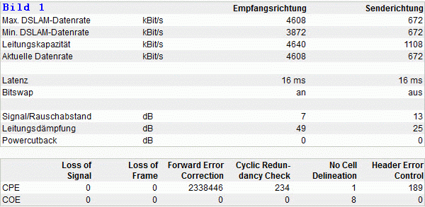 Deine Leistungsdaten sind schlechter als meine, gerade die Leistungsdämpfung 48/49 zu 40 und 25/29 zu 23, und ich hatte über Jahre nur 3000er bei 1&1, seit kurzem wurde mir 6000er RAM geschaltet was auch greift.
