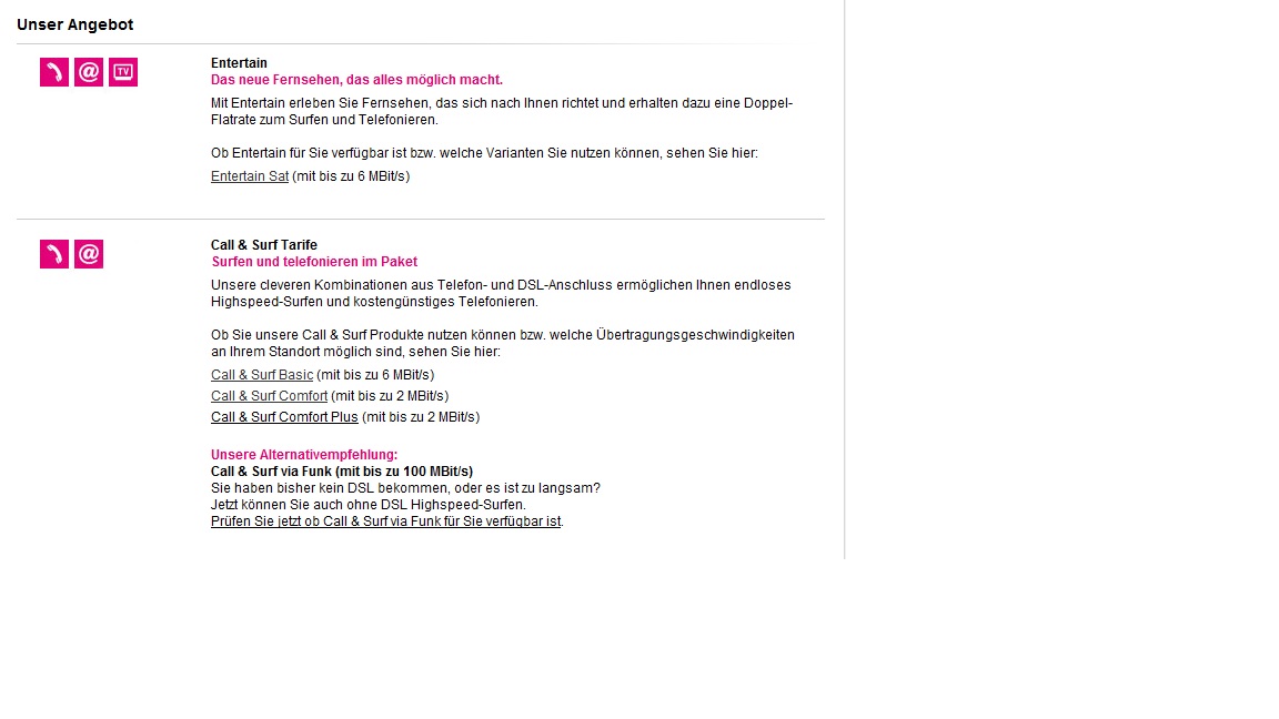 Bei Entertain und Call & Surf Basic wir eine mögliche Geschwindigkeit von 6 Mbit/s angezeigt.