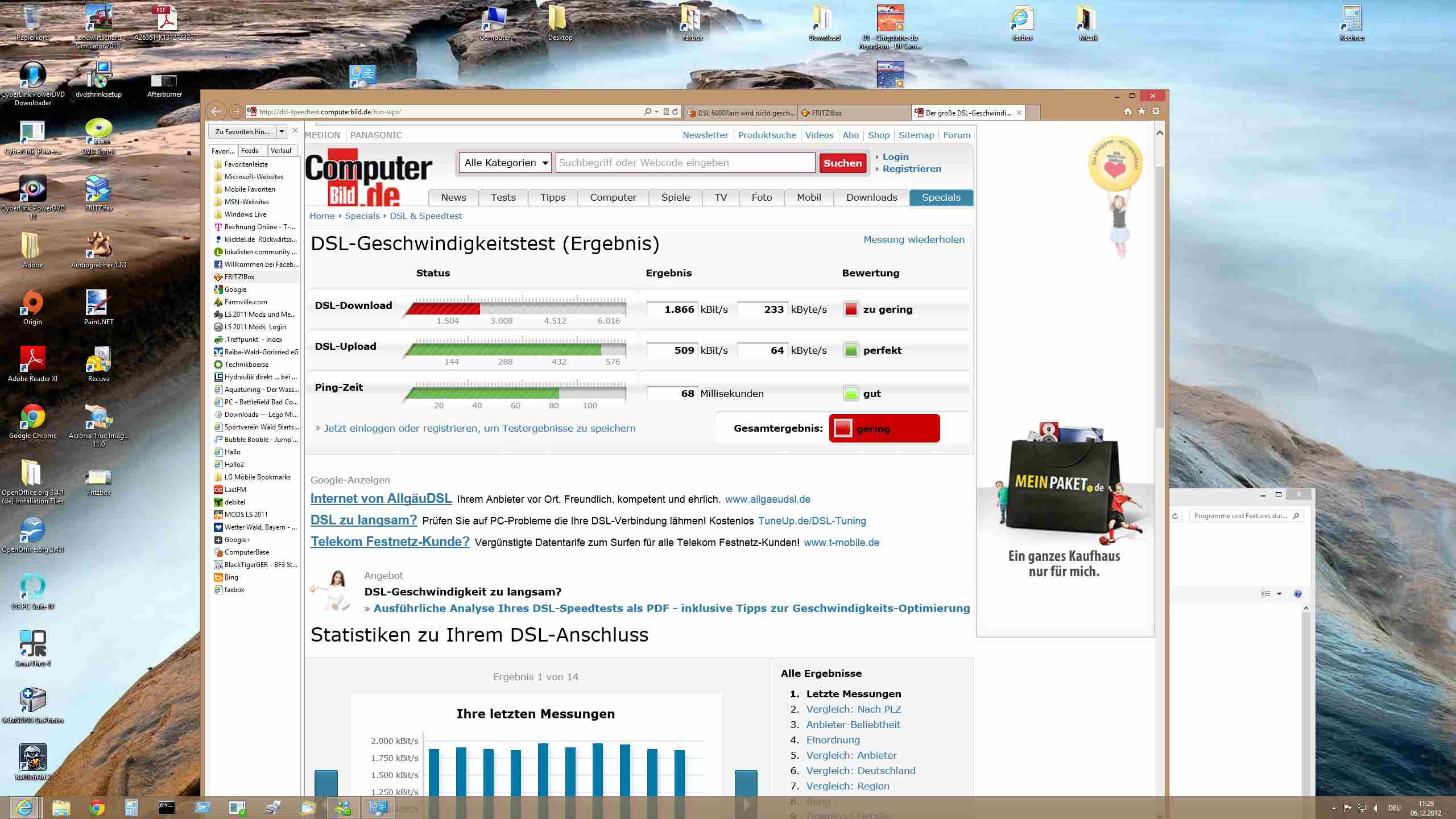 Hab momentan DSL 2000 Ram geschaltet von der Telekom hatte Leitungsstörung und ein Techniker hat sich darum gekümmert ! Dem hab ich erzählt das ich gern mehr Speed hätte also hat er auf den Speed hochgeschaltet und mein Router hat sich mit DSL 5000 up und 576 down synchronisiert und er hat gemeint es müßte jetzt so klappen nur die Telekom hat nur 2000 ram geschaltet wegen Dämpfung wie bekomm ich die Telekom nun dazu das die mir 6000 ram schalten obwohl die Dämpfung theoretisch zu schlecht ist aber funktioniert ja sonst würde die Fritzbox nicht synchronisieren ! Der upload hat sich erhöht nur beim Download häng ich bei Dsl 2000 fest da Telekom nicht 6000 ram schaltet wer kann mir da weiterhelfen ?