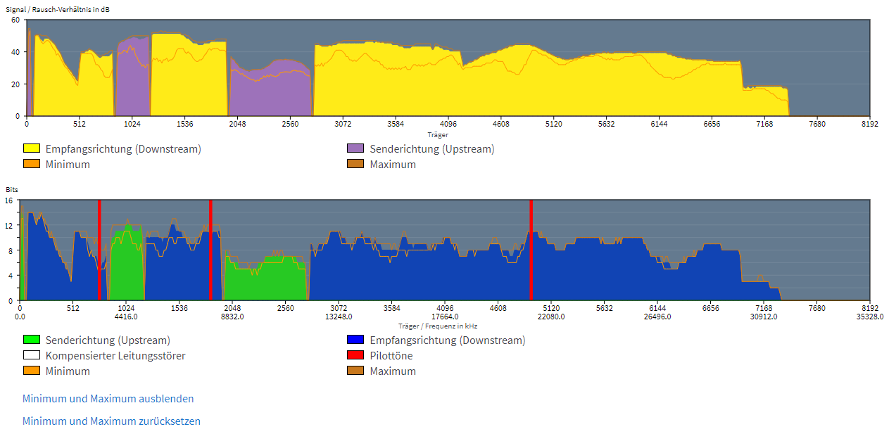 Der ganze Prozess dauert immer ungefähr 3-5 Minuten und tritt zu unterschiedlichsten Tageszeiten auf, teilweise fast stündlich. Gebucht ist ein 250k Anschluss bei der Telekom. Die Probleme treten auch erst seit ca 5 Monaten auf, davor hatte ich 3,5 Jahre keine Probleme, eben erst seit dem Glasfaserausbau hier im Haus.