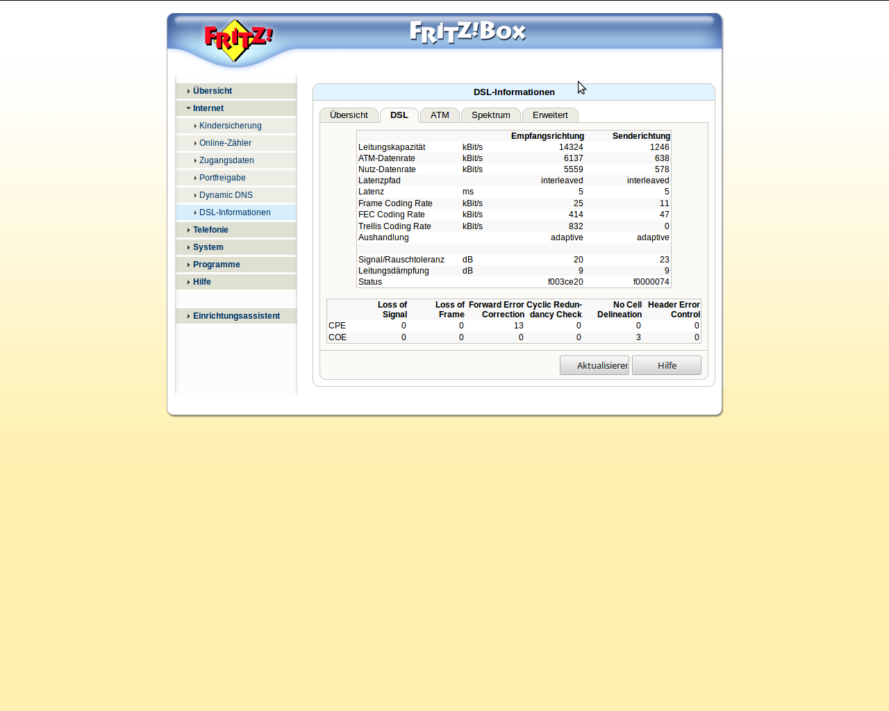 Ich füge die entsprechenden Diagramme bzw. Tabellen meiner Fritz Box bei; vielleicht kann mir daraufhin ja jemand eine Beurteilung zu dieser Sache geben.