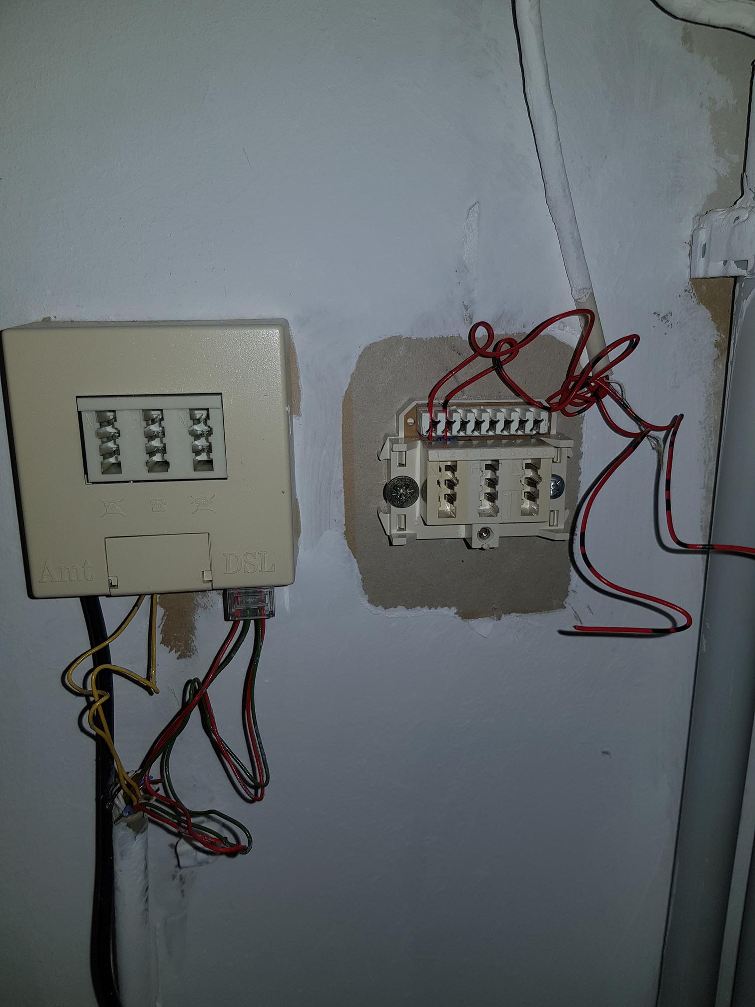 2. In den Wohnräumen sind überall Netzwerkdosen vorinstalliert. Die Kabel kommen alle im Raum, welcher als Büro von den Vorbesitzern als auch von uns genutzt wurde/wird zusammen, sind allerdings nirgends angeschlossen, kommen also blank aus der Wand (wurde wohl nie weiter ausgebaut/verfolgt).