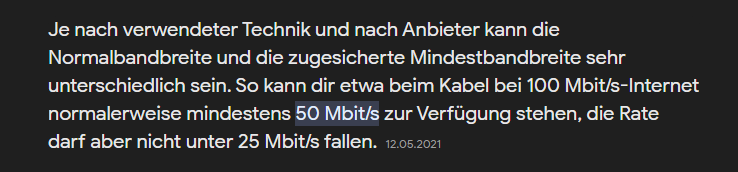 Laut der Bundesnetzagentur darf es nicht weniger als 90 % Geschwindigkeit geben, und es ist bei mir immer < 90 %.