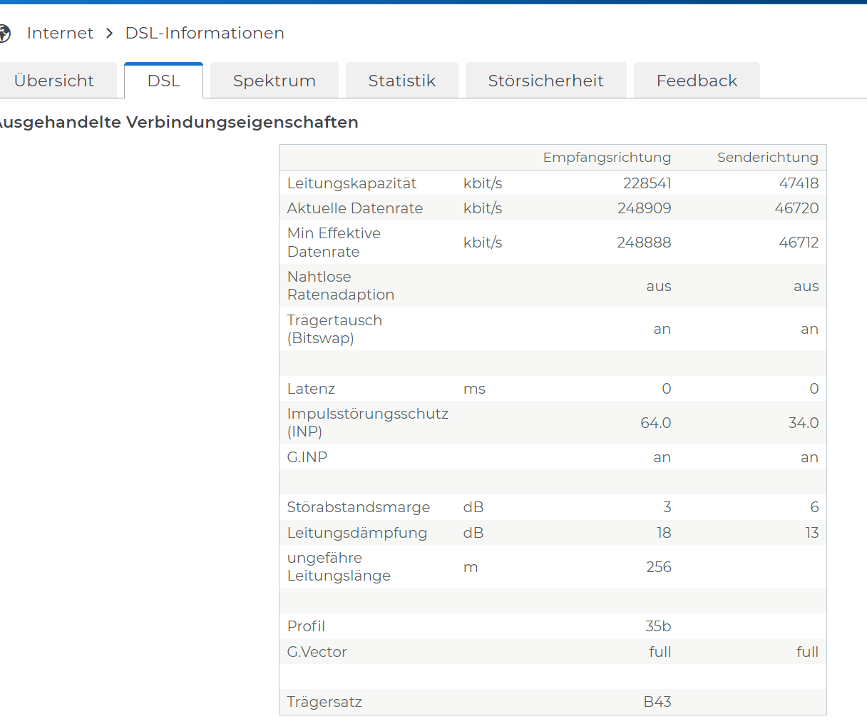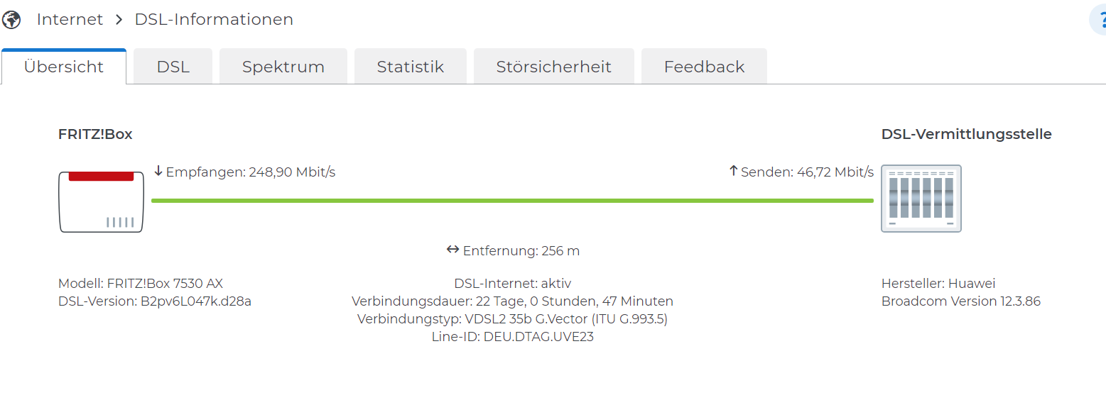Nun bekomme ich aber nur Strich 175Mbit, obwohl sowohl die Fritzbox, wie auch die Telekom beim Verfügbarkeitscheck 250Mbit angibt.
