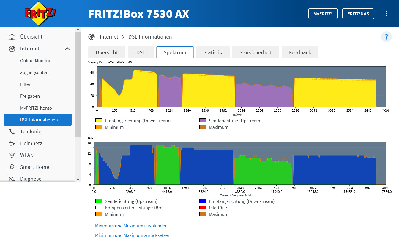 Tagsüber fällt der Download (und nur der Download) auf 1/100 des gebuchten Wertes, mit sporadischen Peaks zu 1/10.