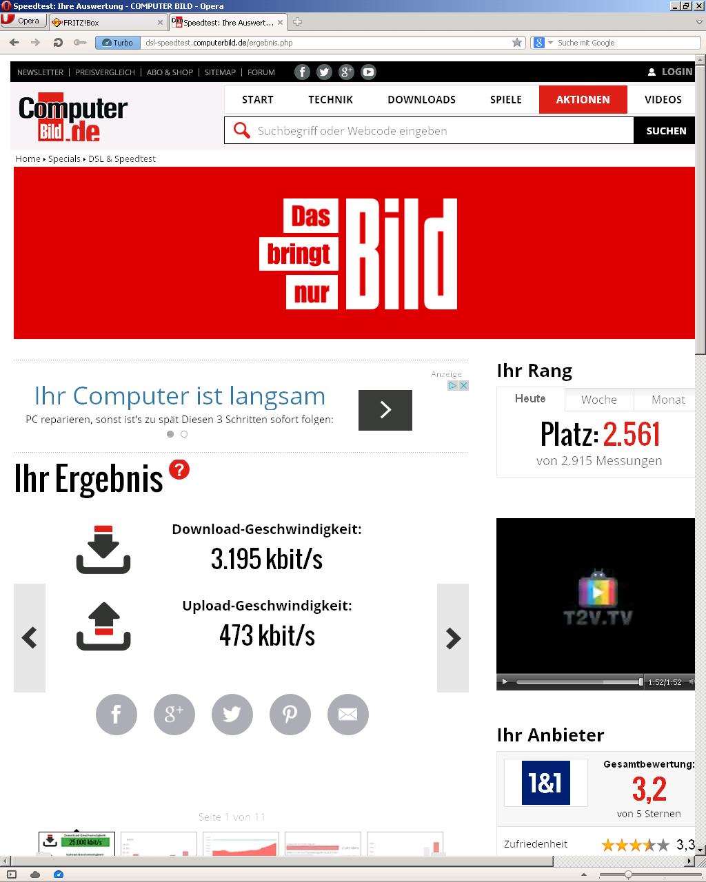 Nach wiederhölter Rücksprache mit dem Kundendienst muss ich feststellen, dass meine Leitung von meinem Provider (1und1) bzw. dem Besitzer der Leitung (Telefonica?) gedrosselt wurde. Nun suche ich nach Wegen zur Abhilfe, wenn möglich.