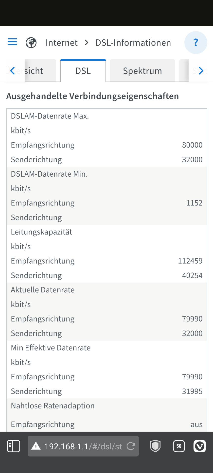 Jein, die Leitungskapazität liegt ja bei 110/40. Also wenn die Leitung nicht besonders wackelig ist, sollten da schon stabile 90/35 drüber gehen, da erscheint eine Drosselung auf 80/32 etwas hart.